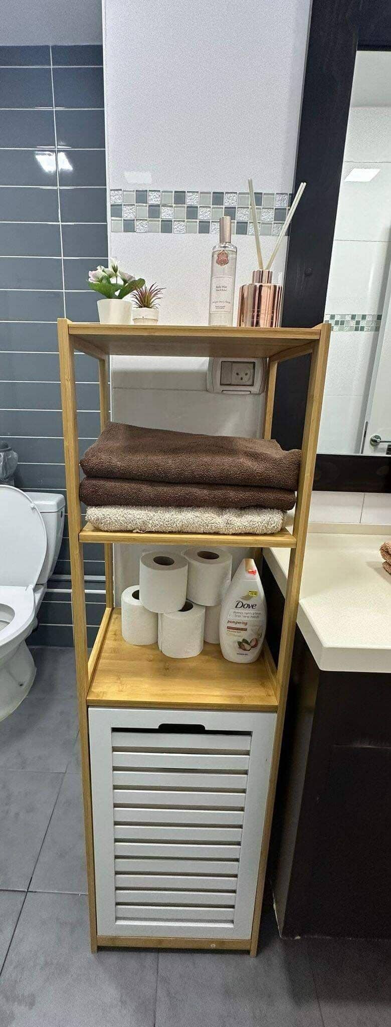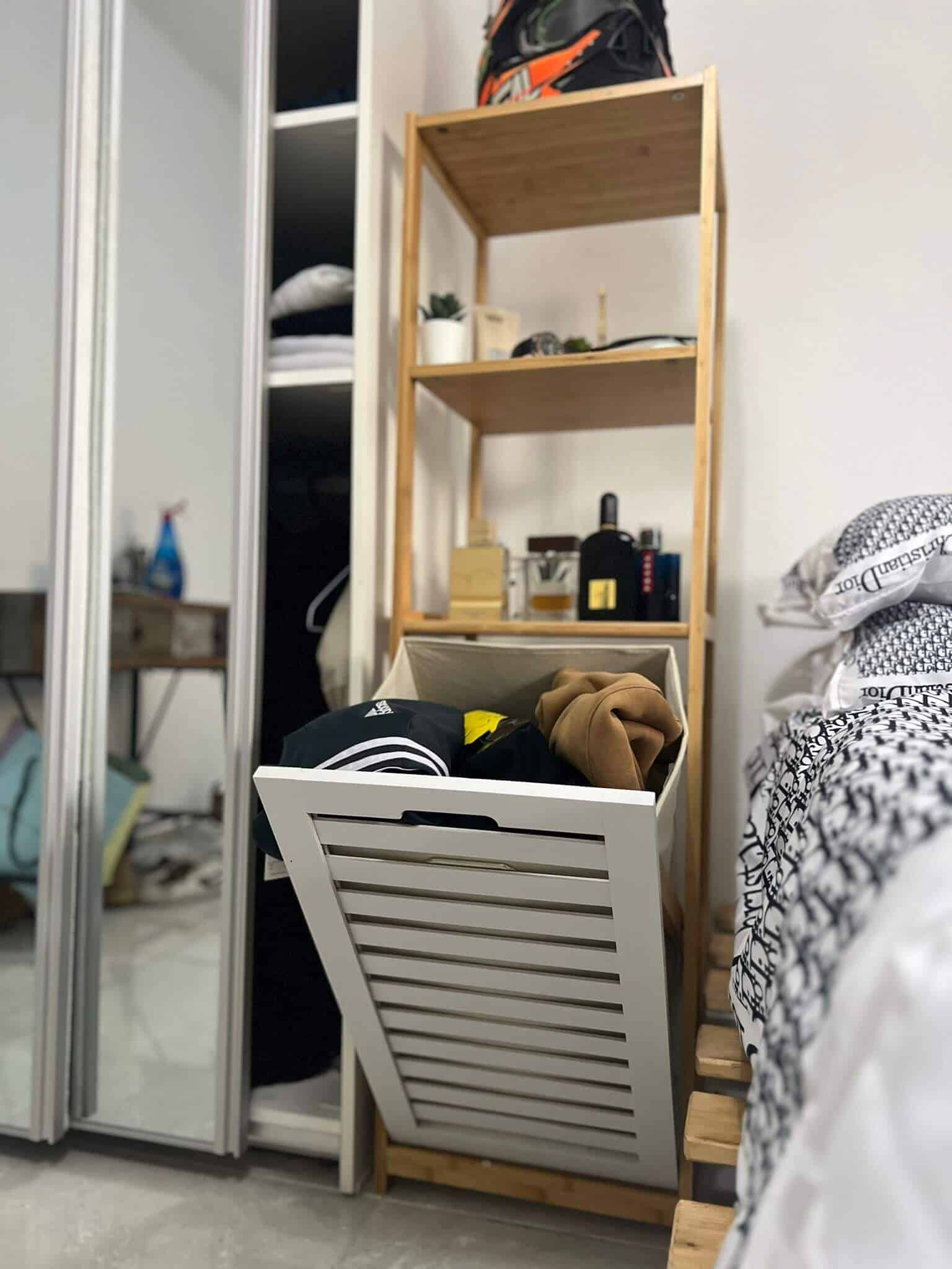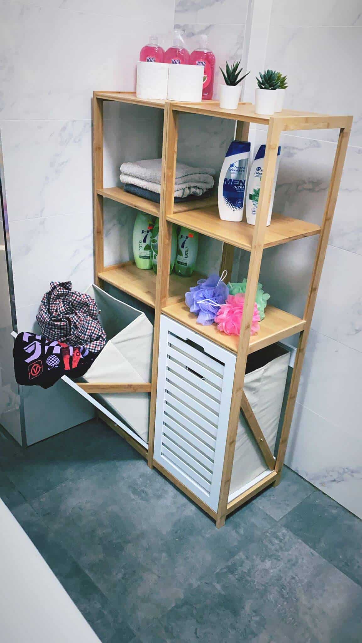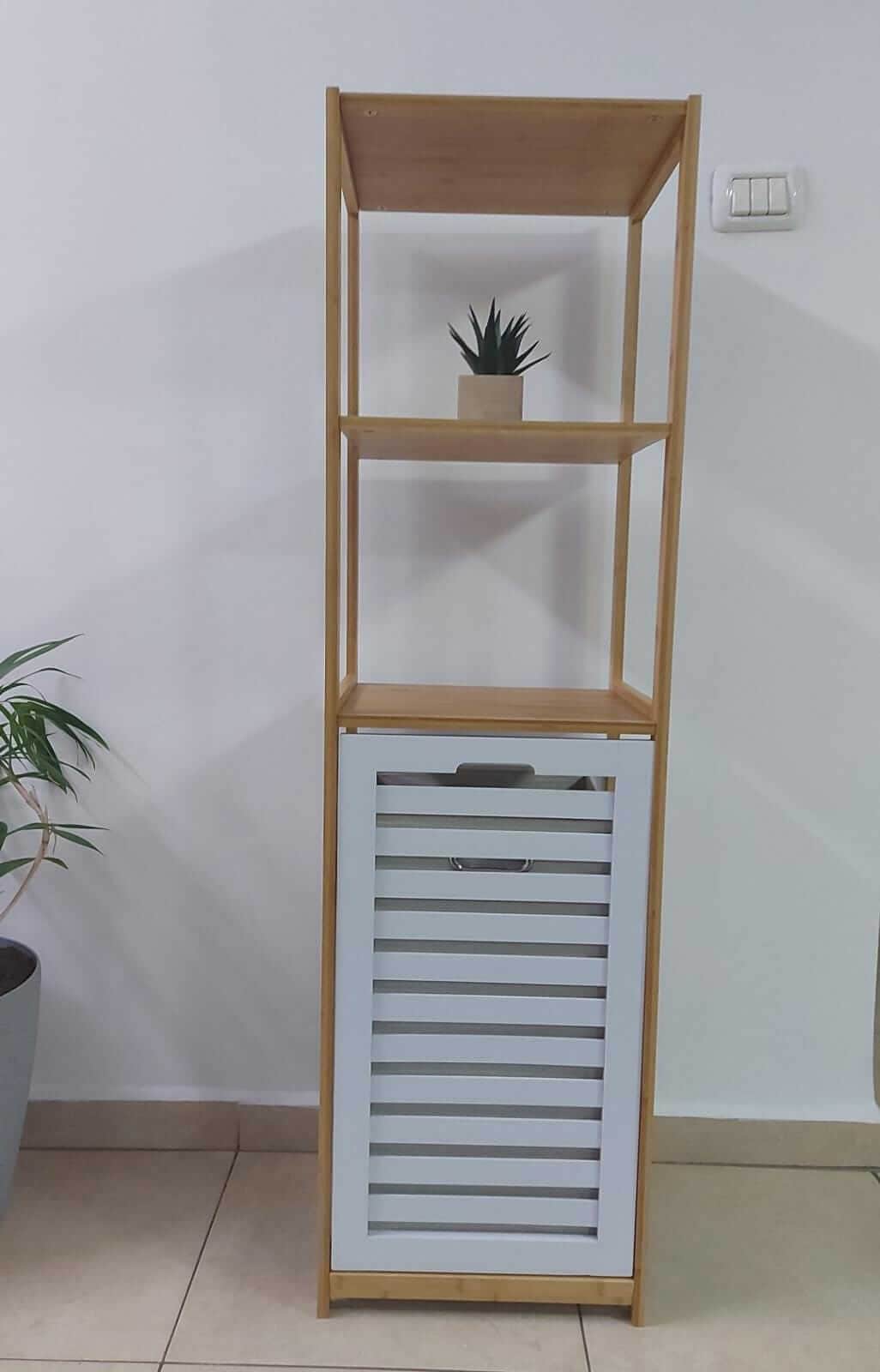 סדר וסטייל: ארונית עץ במבוק משולבת עם סל כביסה
