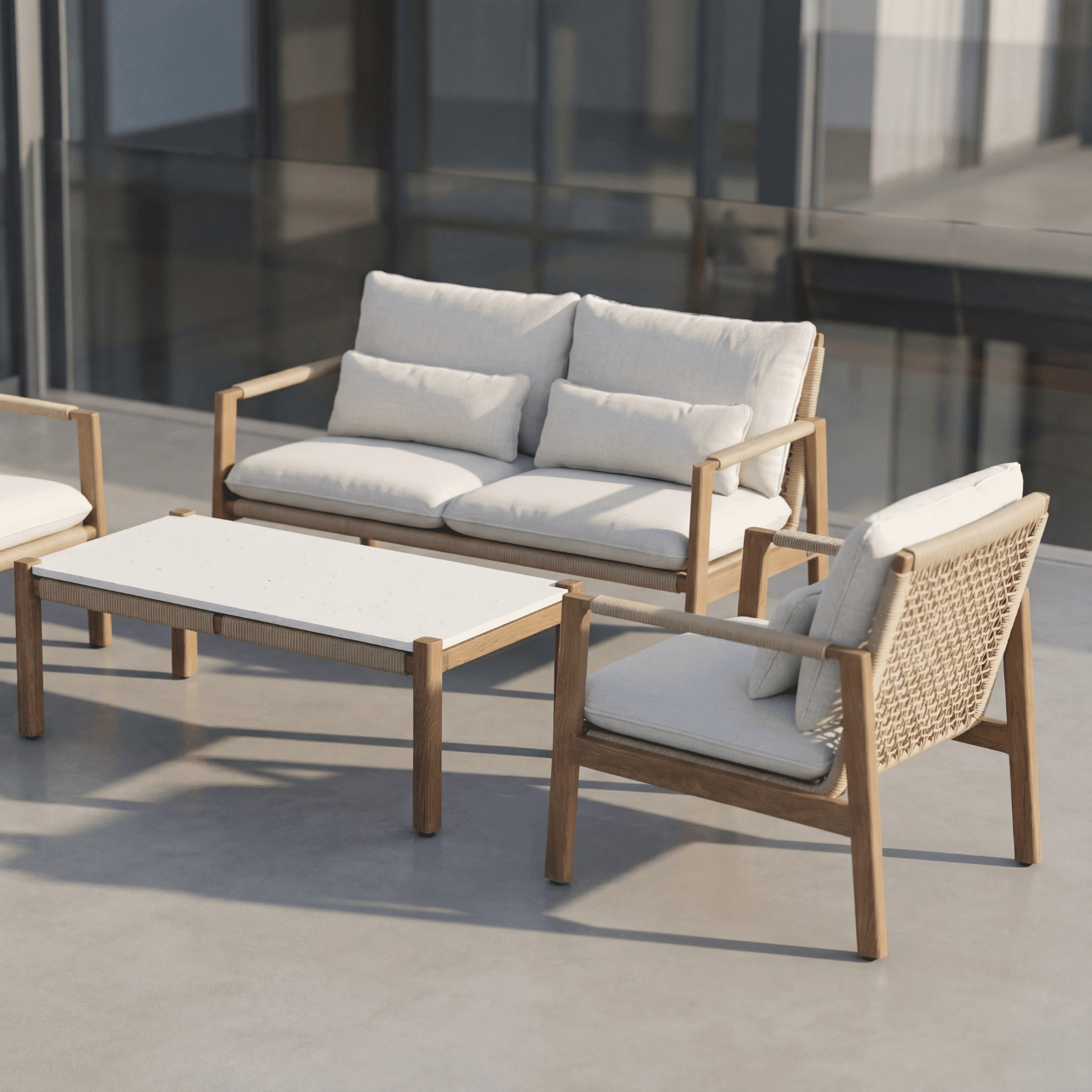| טקסטיל | בד אולפין (Olefin) 480 גרם/מ"ר, גוון Clean Sand-Cream בטקסטורה גסה ויוקרתית |